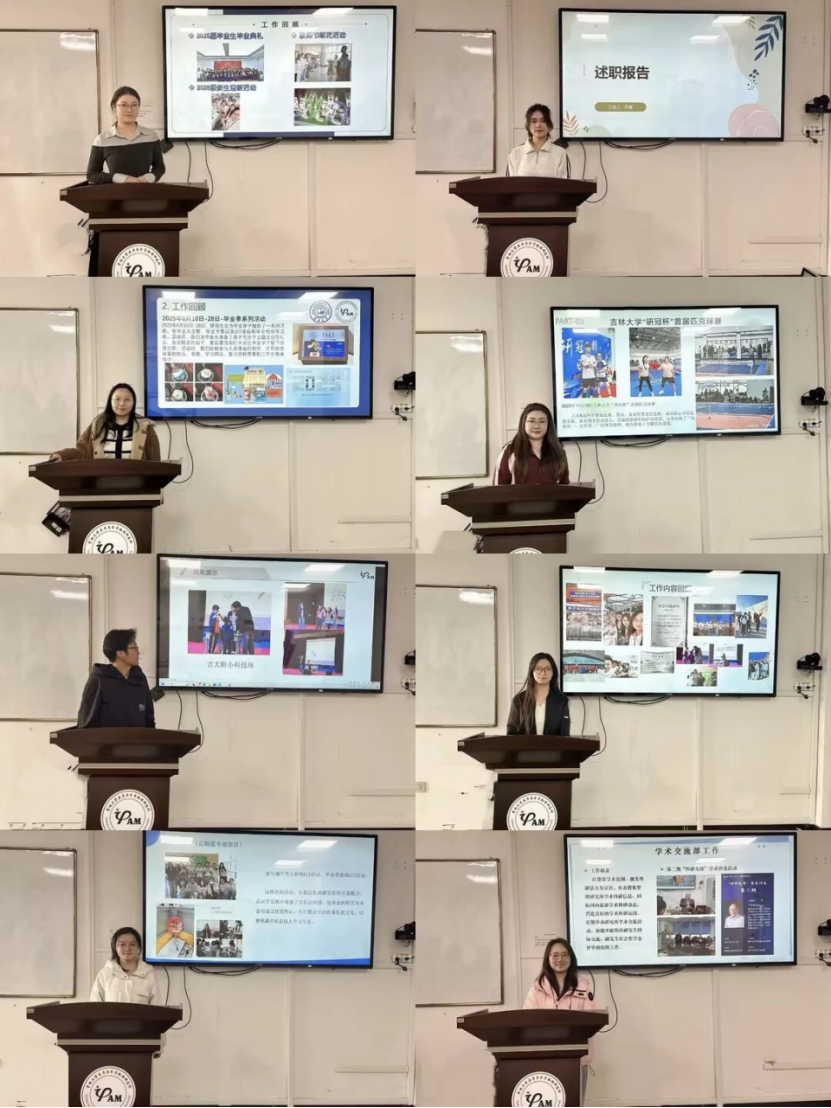本次换届大会严格按照既定流程规范开展。在主持人王梦月简要介绍换届大会流程后,述职竞聘环节正式开始。各位候选人依次上台,从个人基本情况、部门工作认知、过往工作实绩以及未来工作规划等方面进行汇报。
